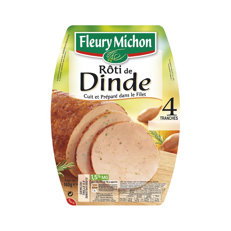3095754135013 - fleury michon - 160g 4 tranches roti dinde dansle filet fleury michon